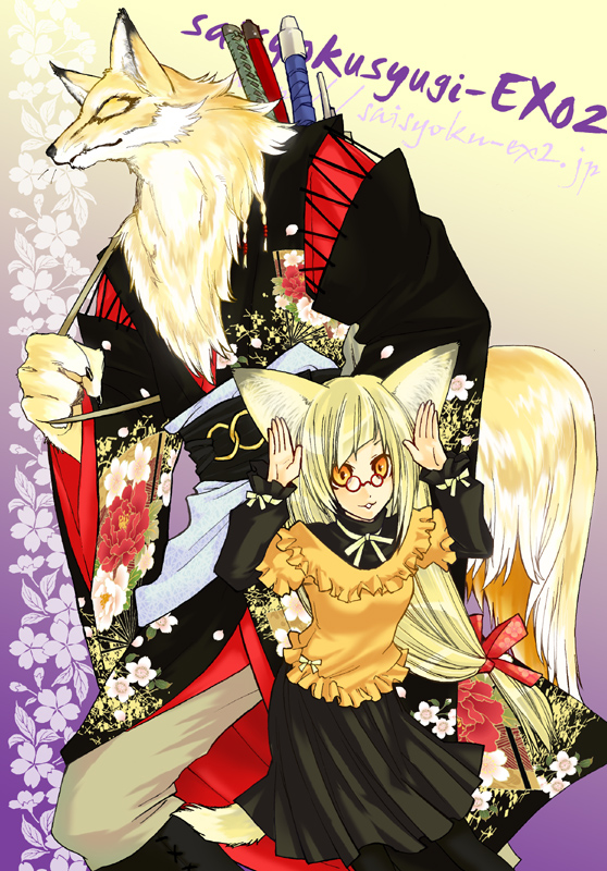 二股しっぽをくるくる絡めて1つに見せてる妖狐のおじさん。しっぽモサモサ!