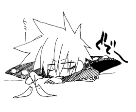 わかりにくいですが机に突っ伏してます。
